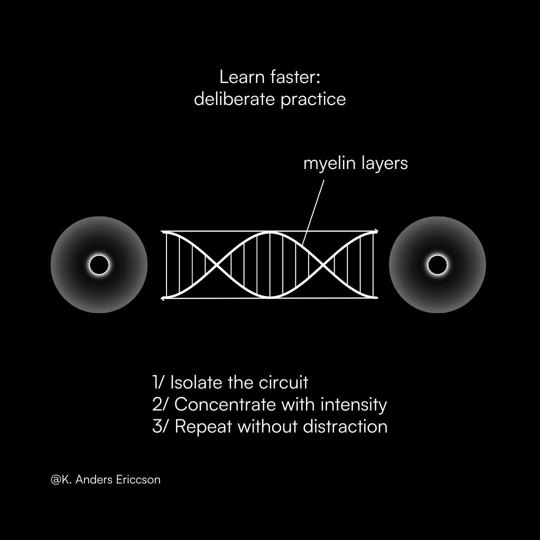 Say you’re working on a challenging new skill, and at the same time your Twitter feed is open, you’re firing **too many circuits simultaneously and haphazardly, resulting in no isolation and no real progress.