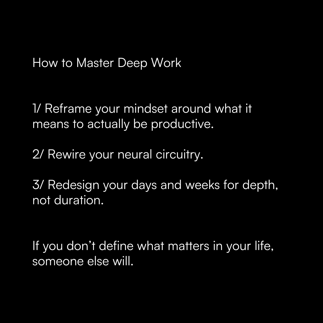 Architect your life around deep work, and you will thrive. Protect it with a violent (or ruthless) level of discipline. Otherwise, you risk letting your life be consumed by the noise—where distractions win and your dreams die.